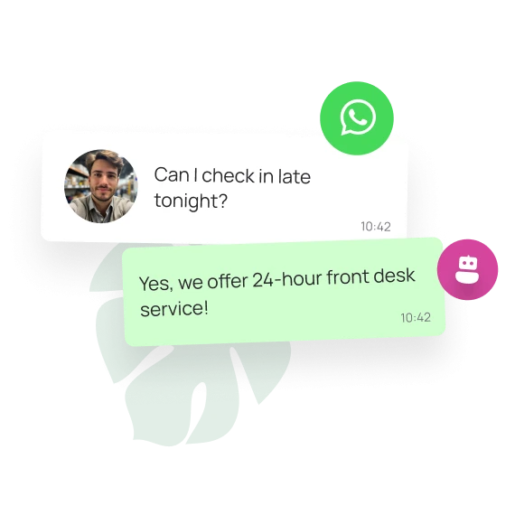Our industry-first visual AI webchat guides visitors through the booking process right on your website. Combined with targeted WhatsApp outreach, you'll drive more direct bookings and reduce reliance on OTAs , keeping more revenue in your pocket.